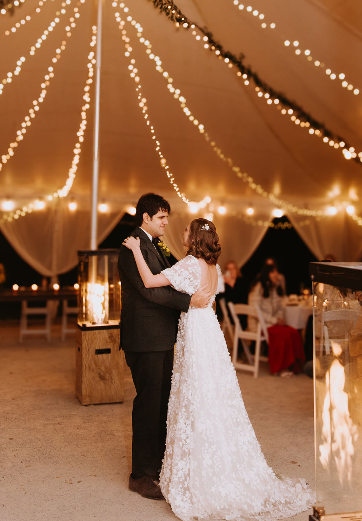 - Decorative lights in the tent and on the property